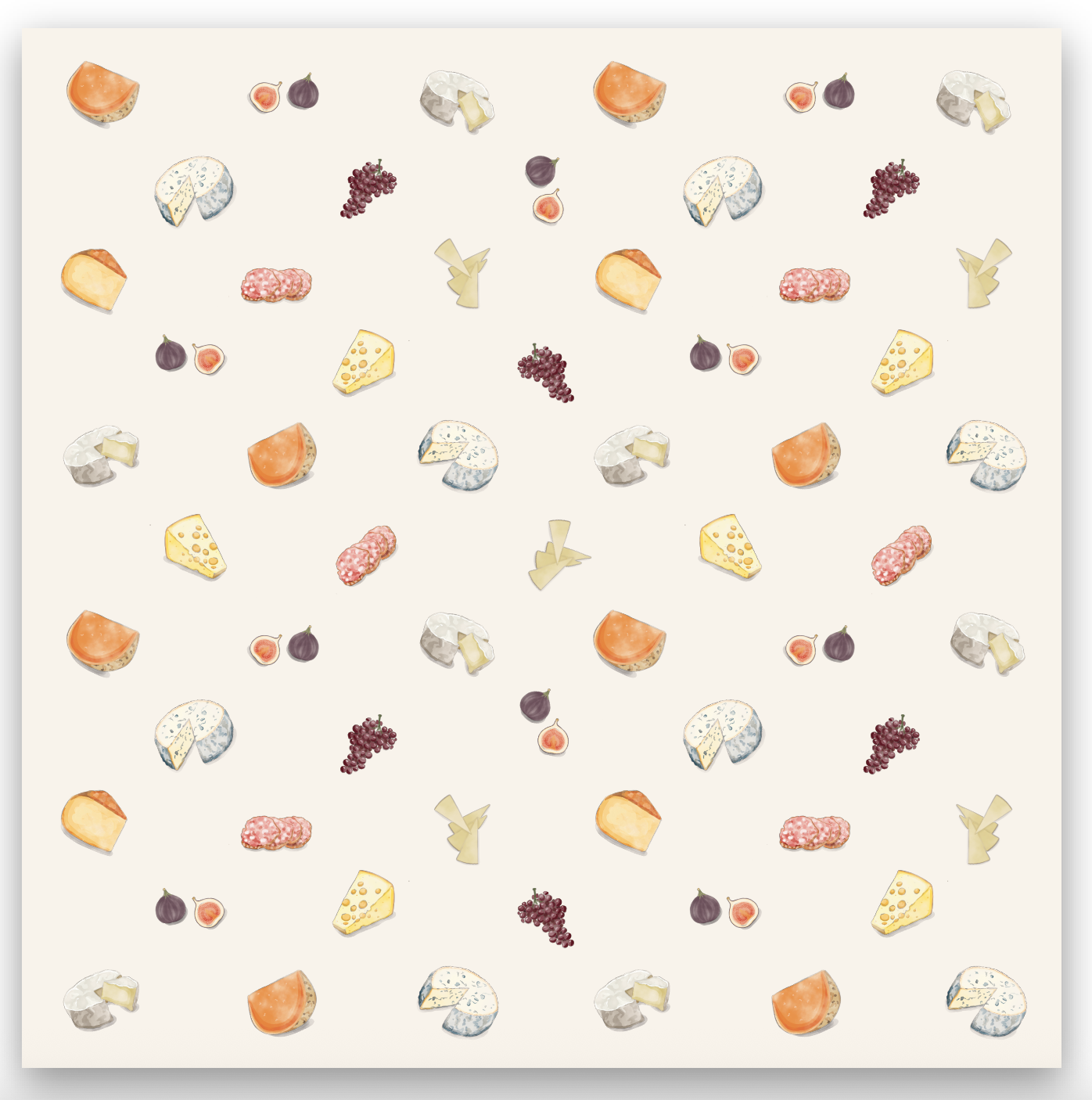 Wrap your gifts in gourmet charm with this Artisan Cheese Wrapping Paper, featuring hand-painted illustrations of French cheeses, figs, and grapes. Inspired by fromageries and culinary artistry, this playful yet elegant design brings a touch of flavor and sophistication to your gifts.