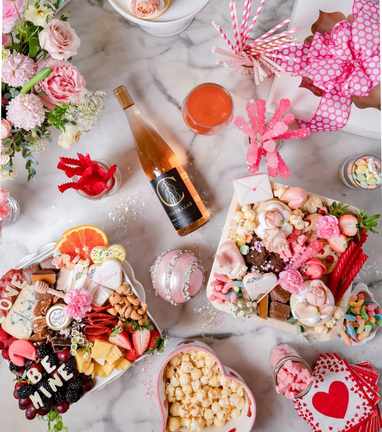 A dessert-focused board for 2 to 4 people. This box is filled with handmade cookies, baked goods, candies, chocolates, and sea salt caramels, along with playful Valentine details throughout. Ideal for anyone with a sweet tooth.
